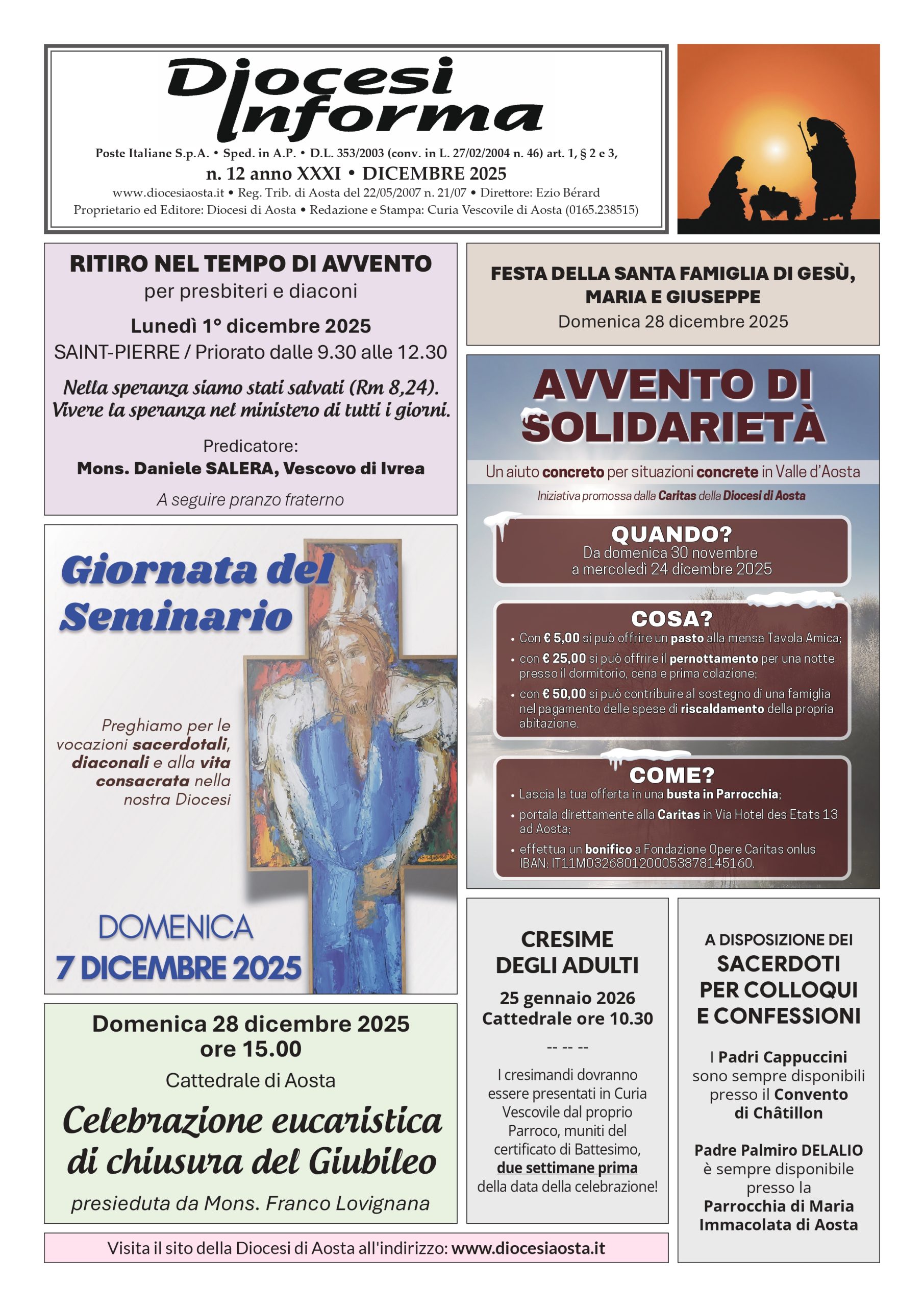 Chiesa parrocchiale di Aymavilles, venerdì 12 dicembre 2025