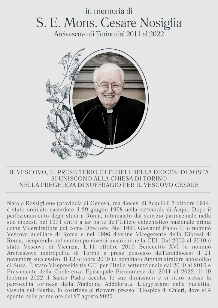 La Chiesa di Aosta si unisce alla preghiera di suffragio per l'Arcivescovo emerito di Torino