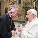 La mia memoria corre all’ultimo incontro avuto con lui in occasione dell’udienza privata concessa alla delegazione della nostra diocesi per la conclusione delle celebrazioni di San Bernardo. Mi rimane impresso il suo volto nel momento in cui ha ricevuto dal Presidente delle Guide valdostane la piccozza: uno sguardo sorpreso e divertito, accompagnato come suo solito da una battuta: “non la userò contro nessuno”! Al di là dell’aneddoto, fu un incontro familiare che certamente rimarrà nel ricordo di tutti i presenti. Nel discorso pronunciato, Papa Francesco ha delineato in maniera mirabile la figura e la spiritualità di San Bernardo con queste tre parole: annuncio, accoglienza e pace.