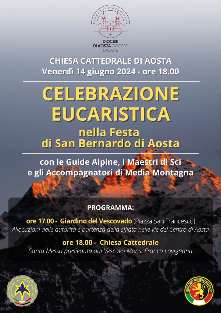 Nata quattro anni fa su impulso del Presidente dell’Unione valdostana Guide di alta montagna, Ezio Marlier, e del Presidente dell’Associazione valdostana Maestri di sci, Beppe Cuc, anche quest’anno in occasione della festa di San Bernardo il Vescovo di Aosta presiede la Santa Messa con le Guide alpine e i Maestri di sci.