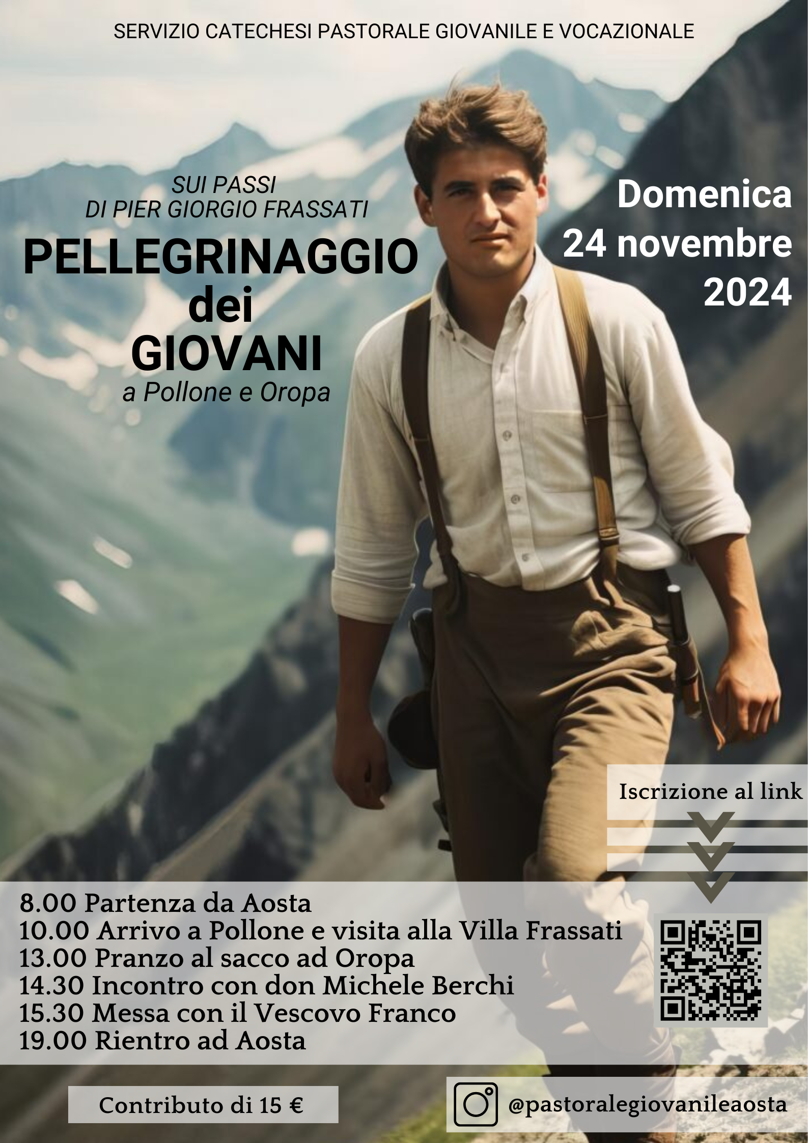 Quest’anno il pellegrinaggio sarà a Pollone e Oropa (Biella), sui passi del beato Pier Giorgio Frassati, secondo il seguente programma: