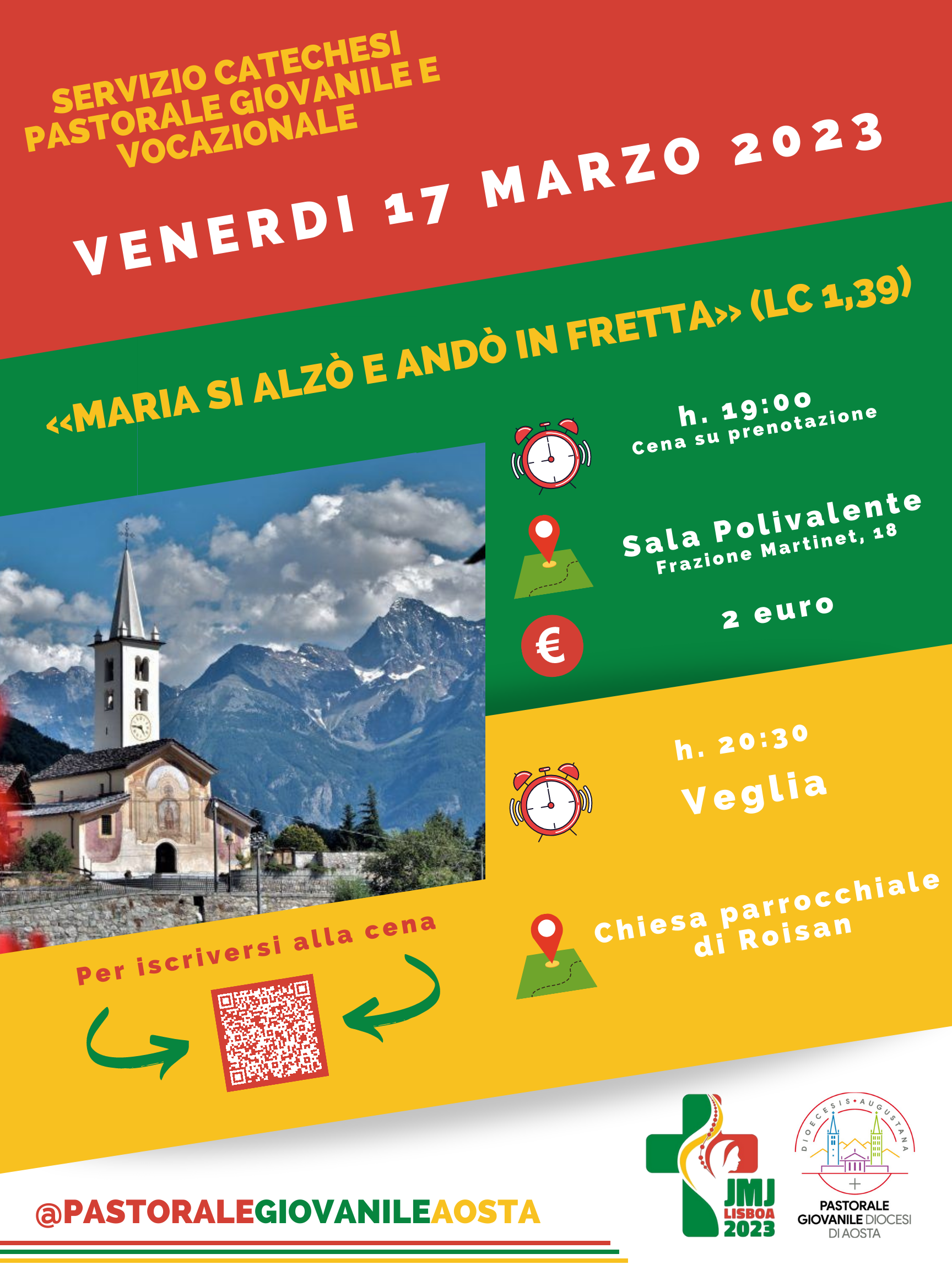 VENERDÌ 17 MARZO a Roisan ci sarà la consueta Veglia di preghiera in preparazione alla Pasqua. La veglia è rivolta a tutti i giovani dalle superiori in su, con i loro educatori e/o accompagnatori.
